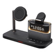 5-in-1 Multifunctional Design: Combines wireless charging, a touch-sensitive RGB night light, an alarm clock, and stands for your iPhone, earphones, and smartwatch—all in one sleek unit.