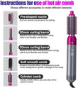 Achieve salon-quality hair at home with the 5-in-1 Hot Air Brush Kit. Equipped with 4 interchangeable brush heads, it makes straightening, curling, volumizing, and scalp massaging effortless. Simply press the button to switch between attachments.