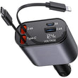- Built-in 2 Retractable Cables, Refuse to Tangle: Cigarette Lighter USB C Charger Flexible retractable cable design, the cable can be up to 80cm long, with 7 length positions, more convenient to control and use when charging. The retractable cable will not tangle the cable and is easy to store, making your car space more tidy.