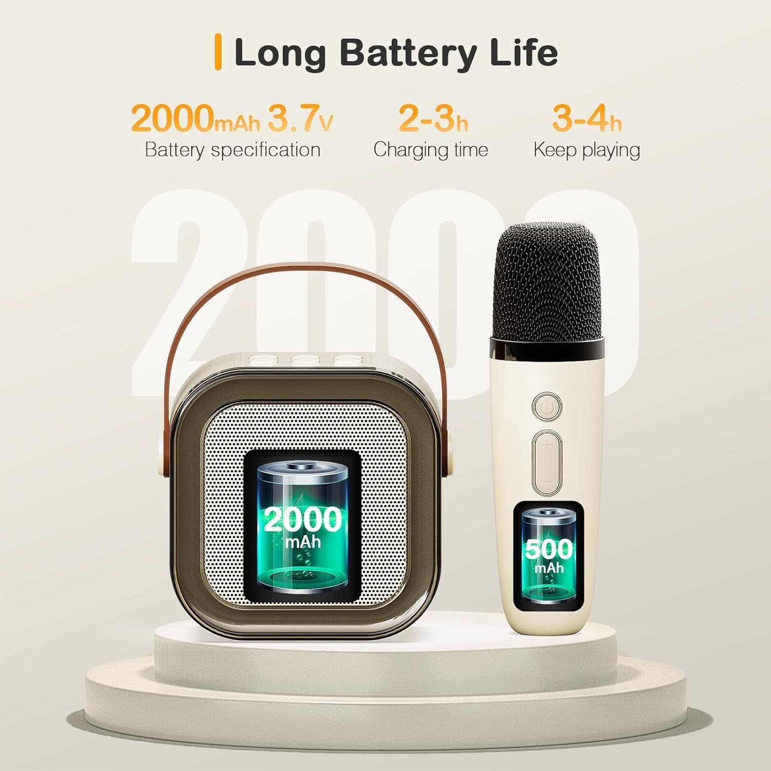 Take the party anywhere with this portable karaoke machine, powered by a 2000 mAh rechargeable battery for 3-4 hours of continuous fun. Ideal for birthdays, outdoor events, and travel.