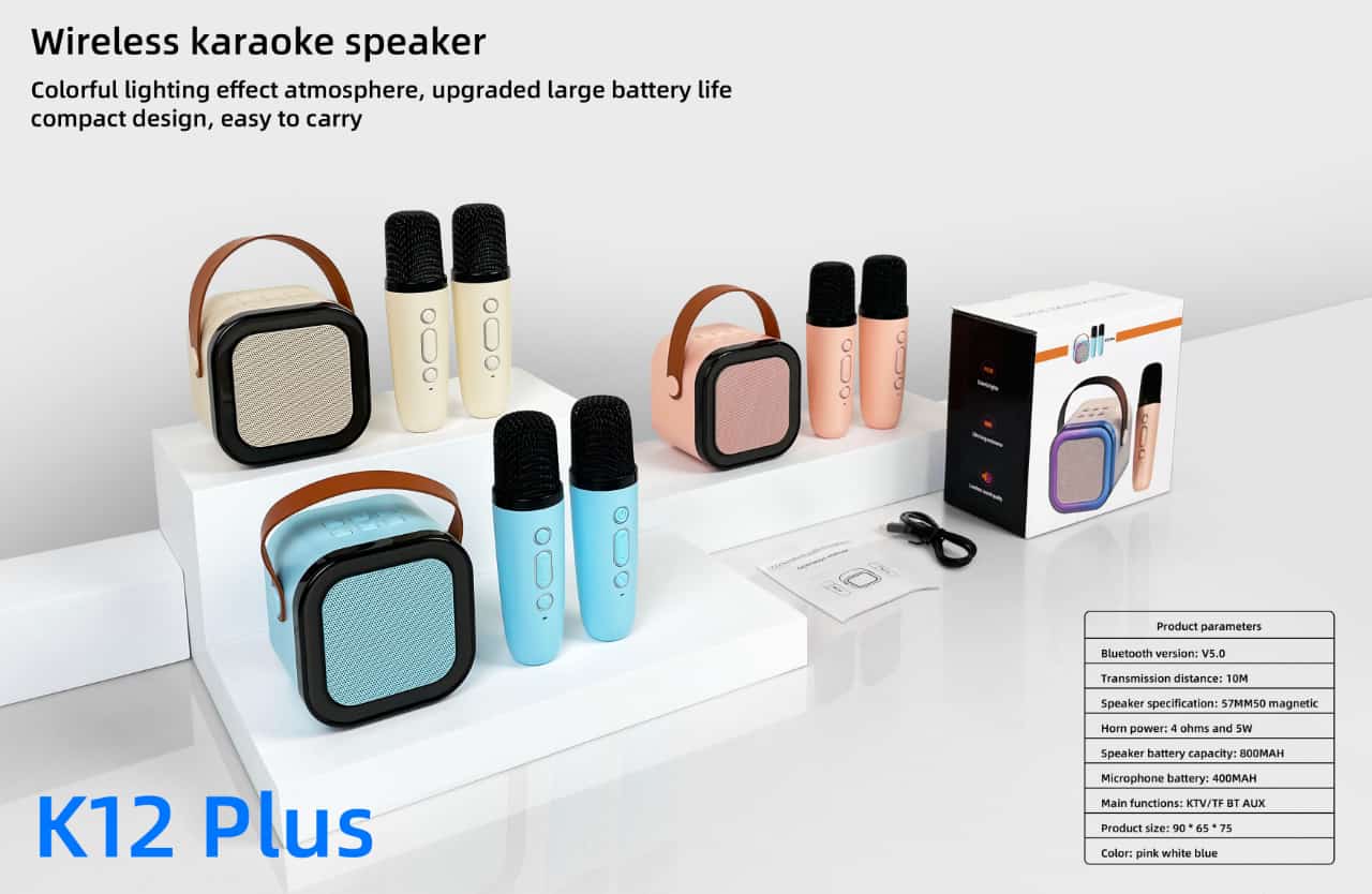 This karaoke machine includes 2 wireless microphones and offers 5 voice modes: female, male, kids, magic, and original. Its compact, lightweight design is perfect for indoor and outdoor entertainment.