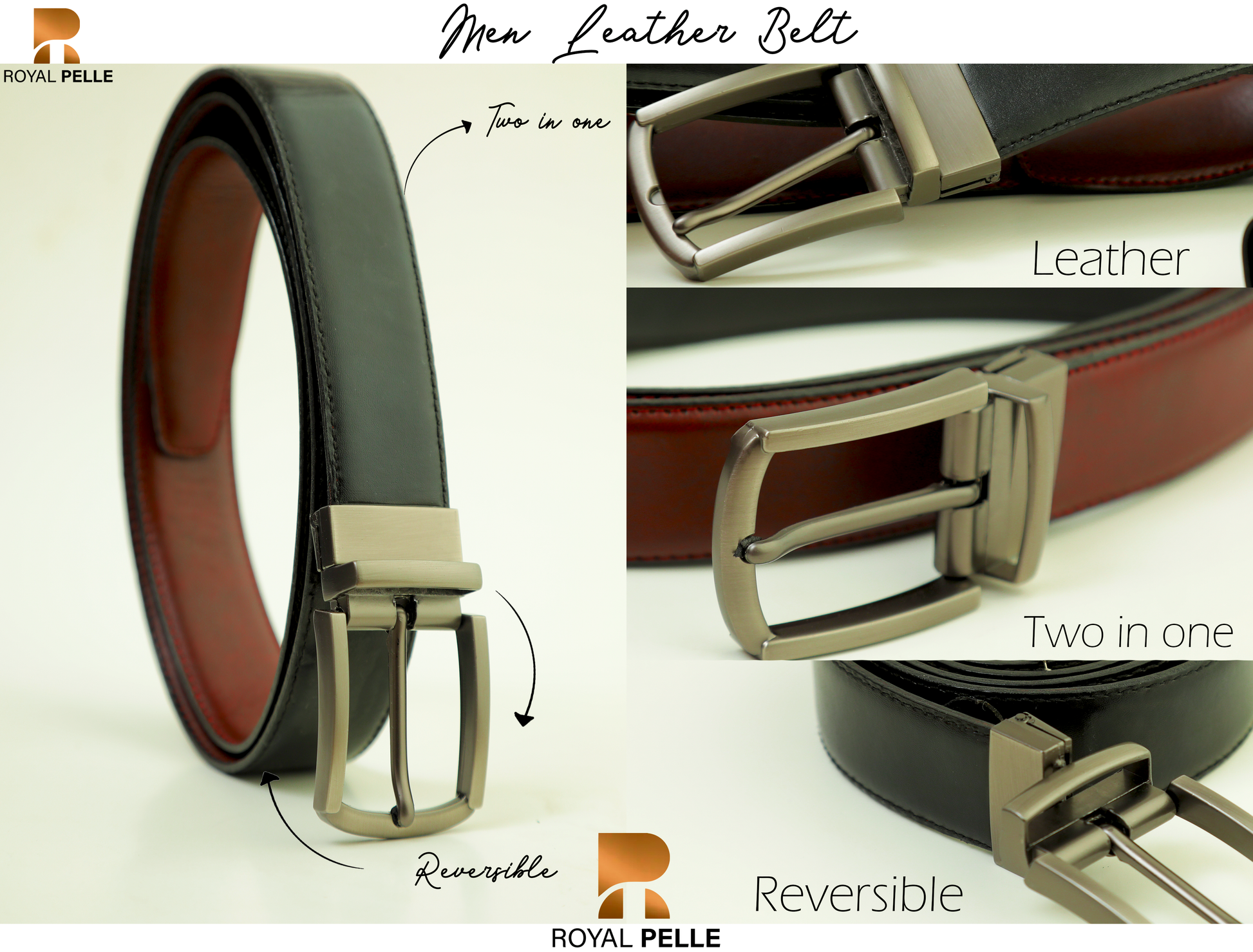 - Reversible Leather Belt: A versatile two-in-one belt, crafted from premium leather, offering both black and brown options to complement any outfit.