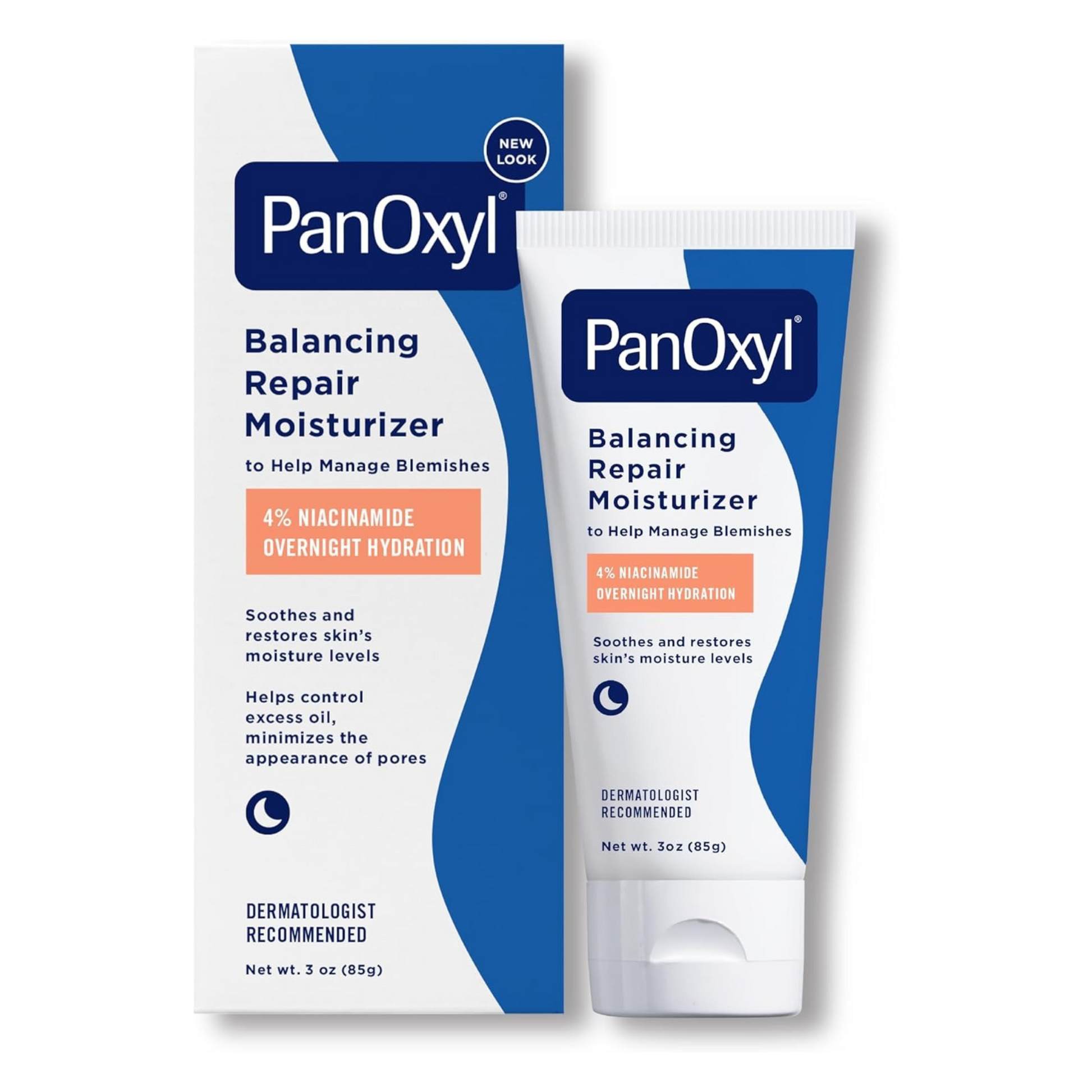 PanOxyl Balancing Repair Moisturizer – An overnight hydrating moisturizer with 4% Niacinamide to help manage blemishes, control oil, and minimize pores.